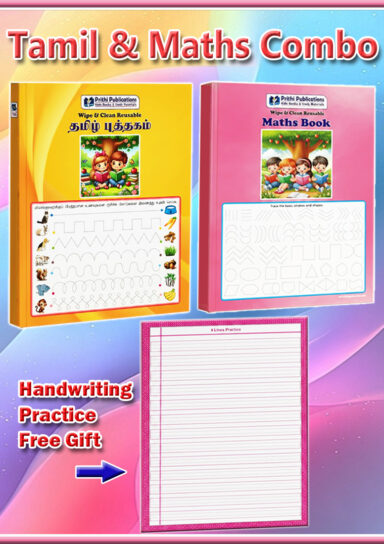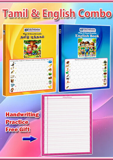 “This combo helps to overcome difficulties in Tamil learning.”  247 Letters practice with example words and pictures, improves tamil vocabulary, Grammer Practice.  Reusable Handwriting Sheet also Free gift.   A perfect combo for Tamil learning.  “More practice makes you more perfect and makes learning easy.
