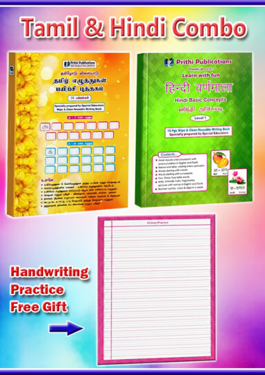 Build confidence, skills, and a love for learning with the Learn with Fun – Reusable Learning Combo Pack for Tamil language, thoughtfully created by a team of special educators for young learners aged 3 years and above.