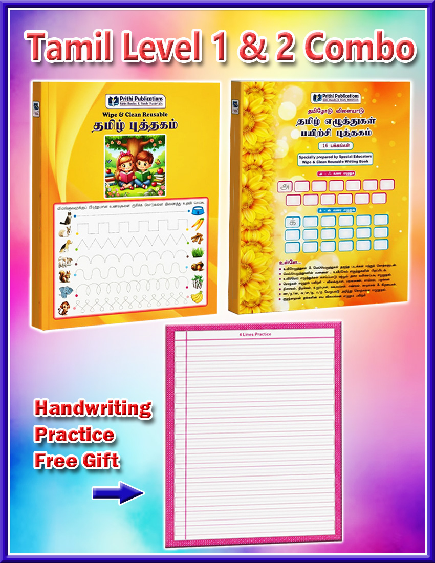 Support your child’s Tamil learning with this Reusable Tamil Practice Book Combo, designed by special educators. This combo includes Tamil Level 1, Tamil Level, 2 (Thamizhodu Vilaiyadu), Tamil Level 3 (Sollodu Vilaiyadu).