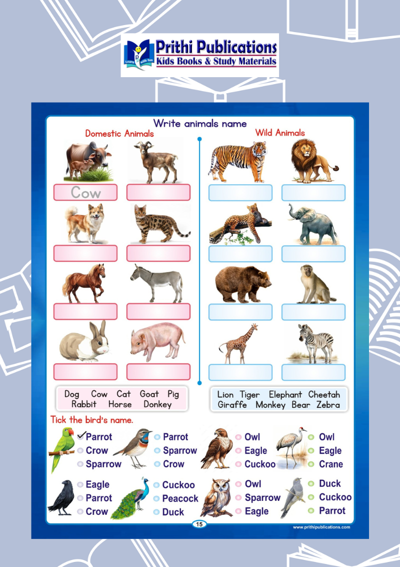 ✔ Birds, animals, fruits & vegetables name identification