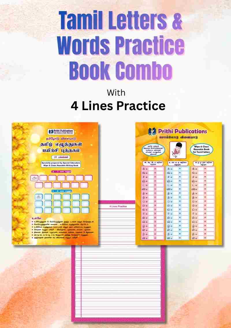 Help your child build a strong foundation in Tamil reading and writing with this thoughtfully designed Tamil Reusable Learning Book Combo, created by a Special Educator Team to ensure easy, effective, and enjoyable learning.