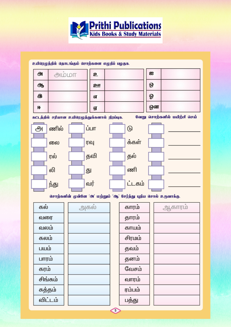 This book is an excellent resource for early learners, homeschooling, kindergarten, LKG–UKG children and Tamil beginners.
