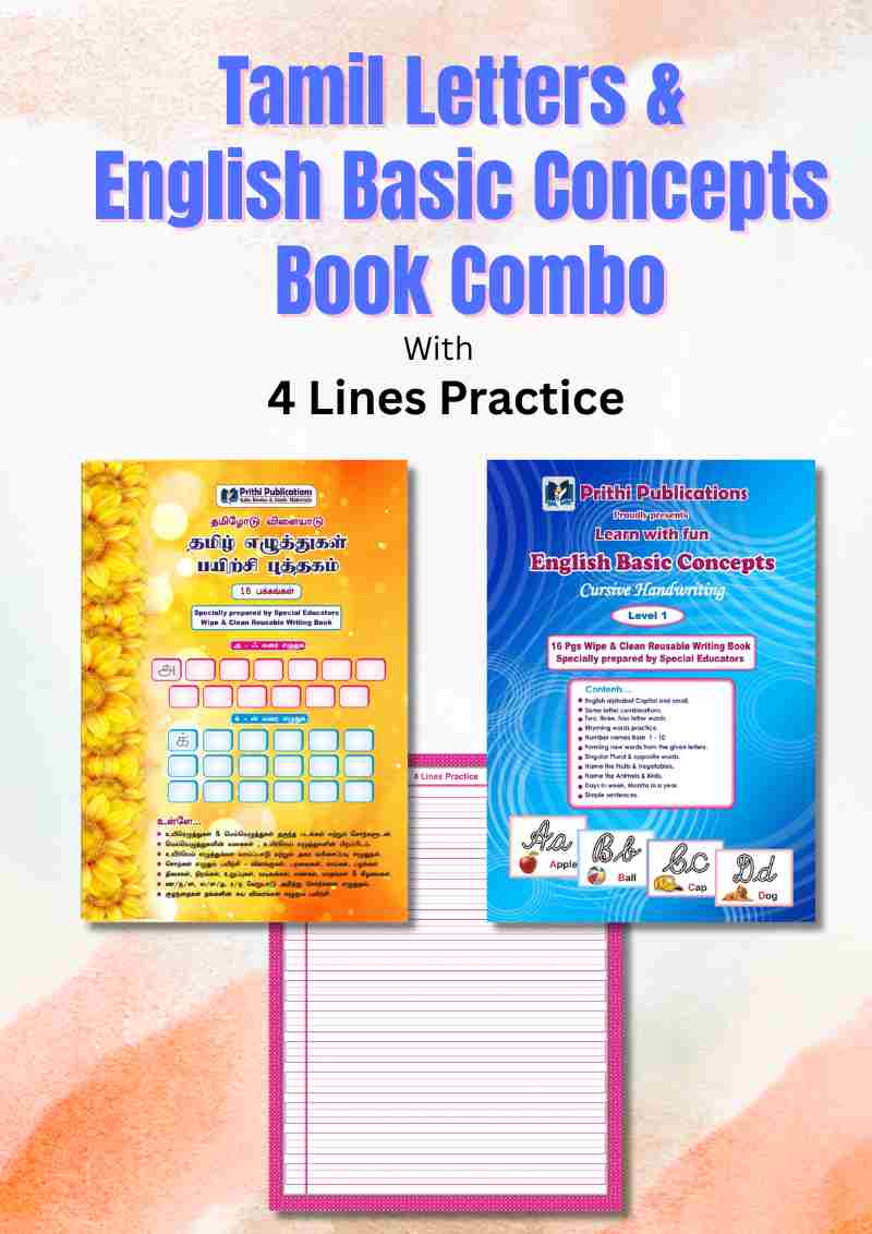 Help your child build strong handwriting skills in Tamil and English with this Reusable Practice Books Combo, specially designed by special educators.