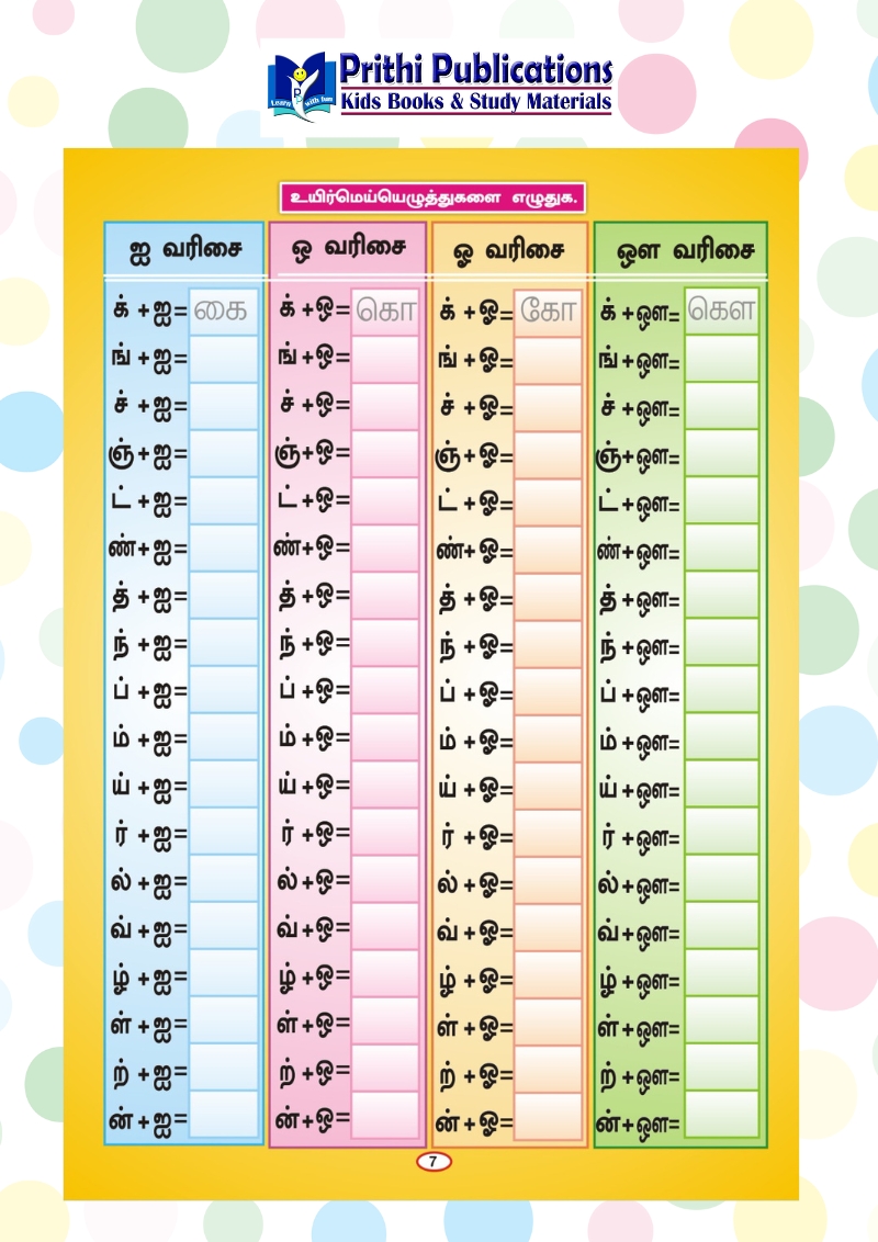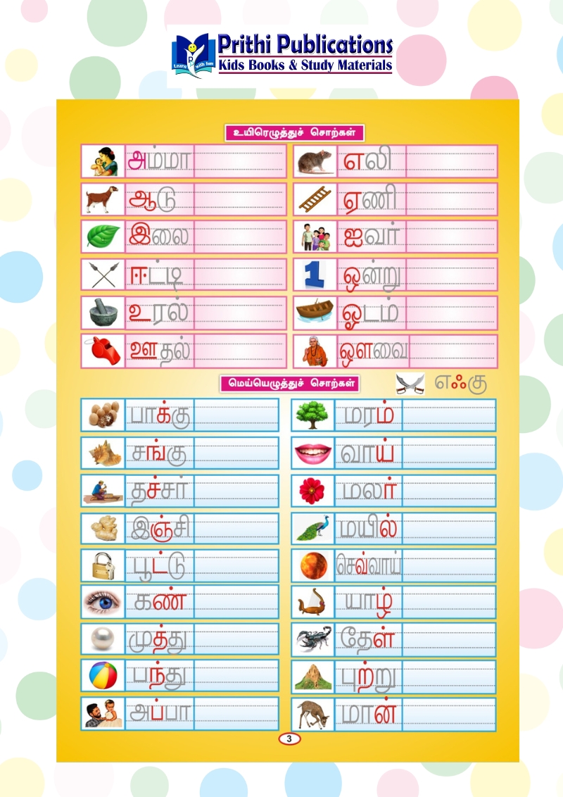 * Helps kids recognize Tamil letters, their shapes, and sounds.