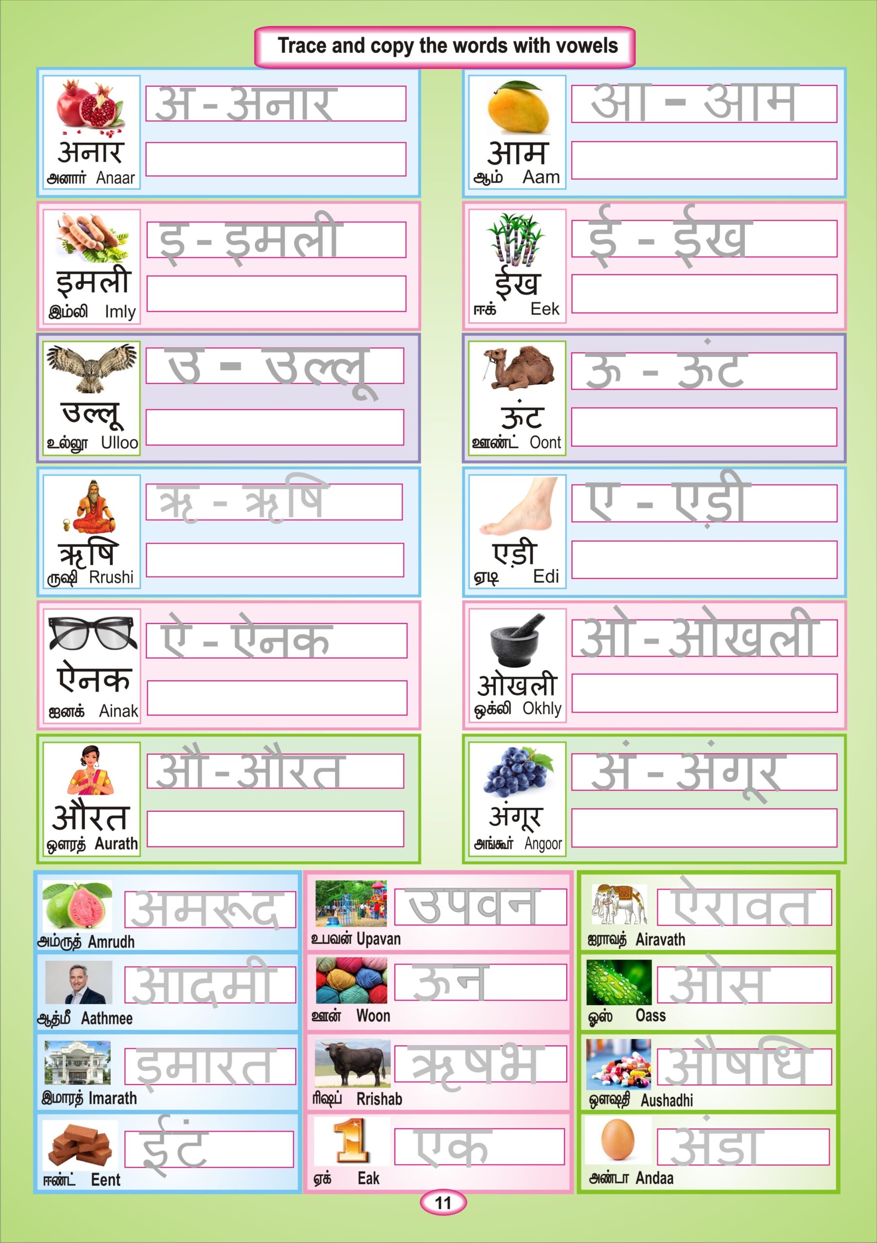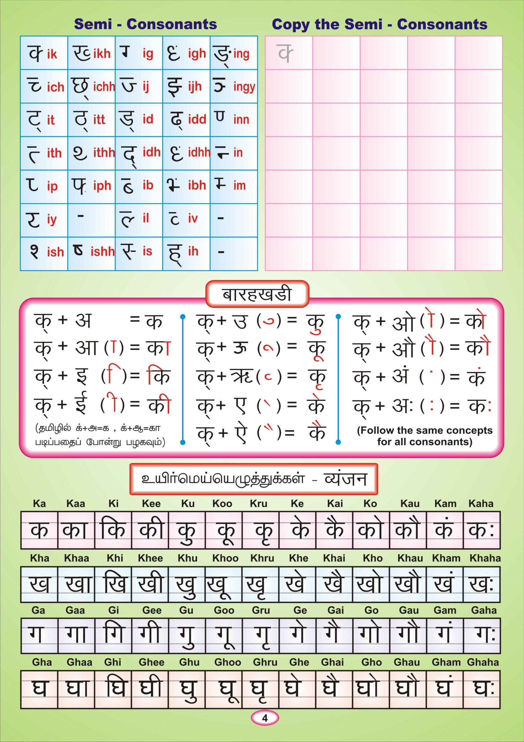 Swar & Vyanjan, Semi-consonants tracing and copying.