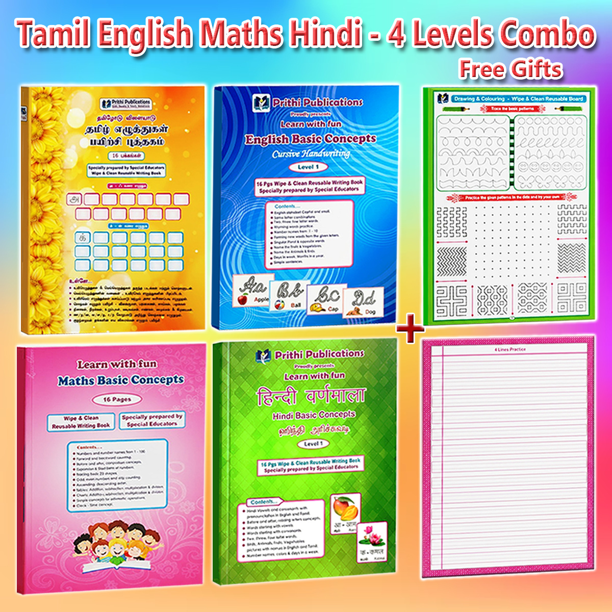 Give your child the perfect foundation in Tamil and English handwriting with this specially curated reusable practice books combo, created by experienced special educators for stress-free and joyful learning.